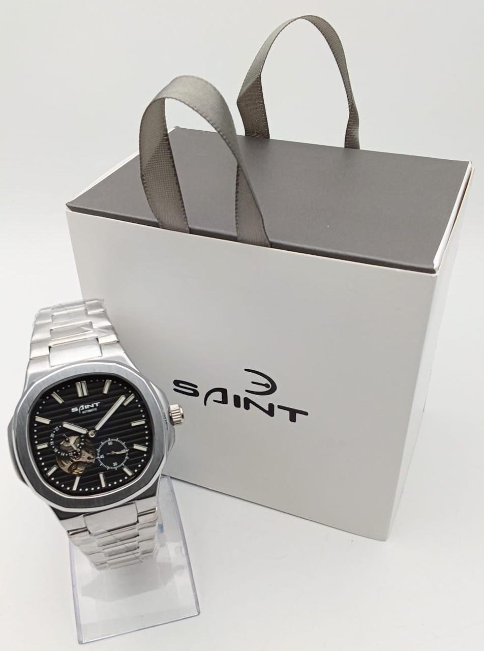 Descubre el equilibrio perfecto entre estilo y precisión con este exclusivo reloj Saint Automatic. Su diseño sofisticado con carátula negra y detalles visibles del mecanismo automático le da un toque moderno y distinguido.